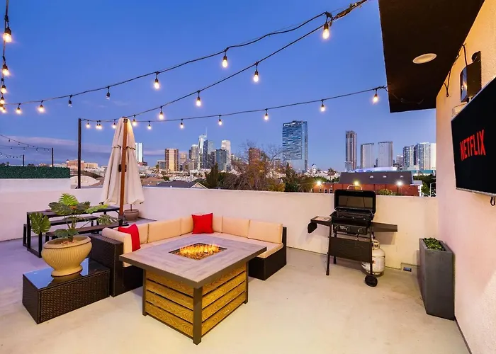 Situated just a 5-minute walk from South Bonnie Brae Tract Historic District, the 3-bedroom Modern Rooftop Villa offers quick access to numerous city landmarks nearby.